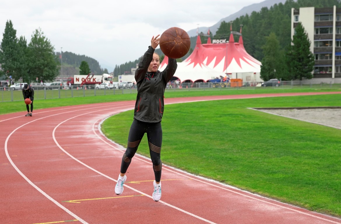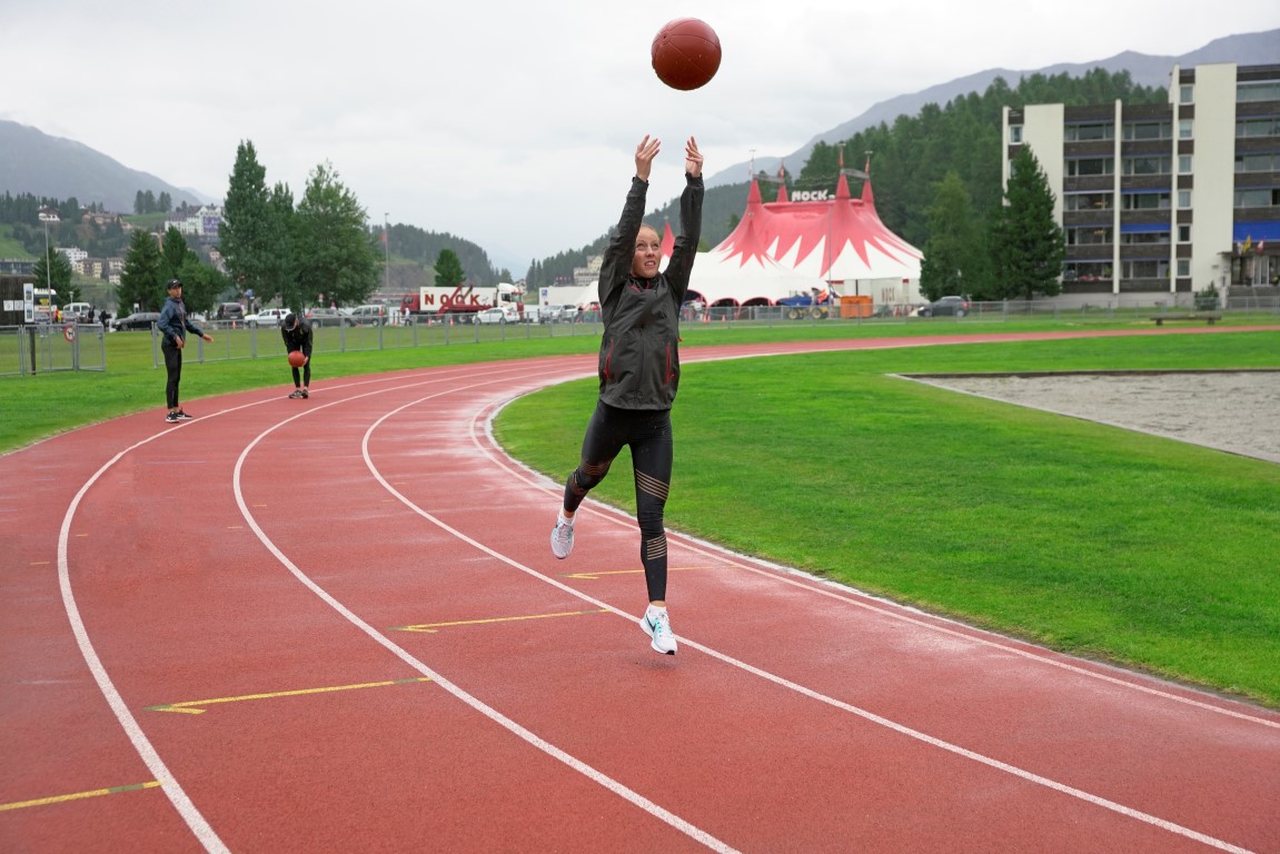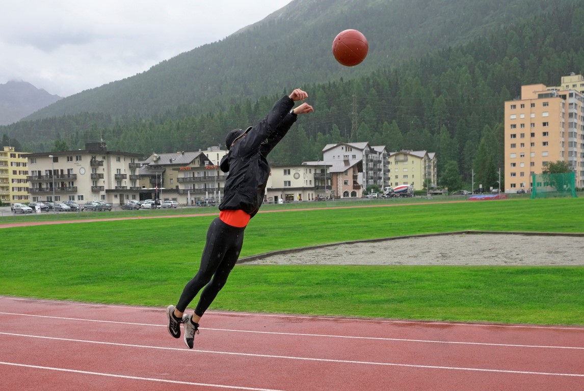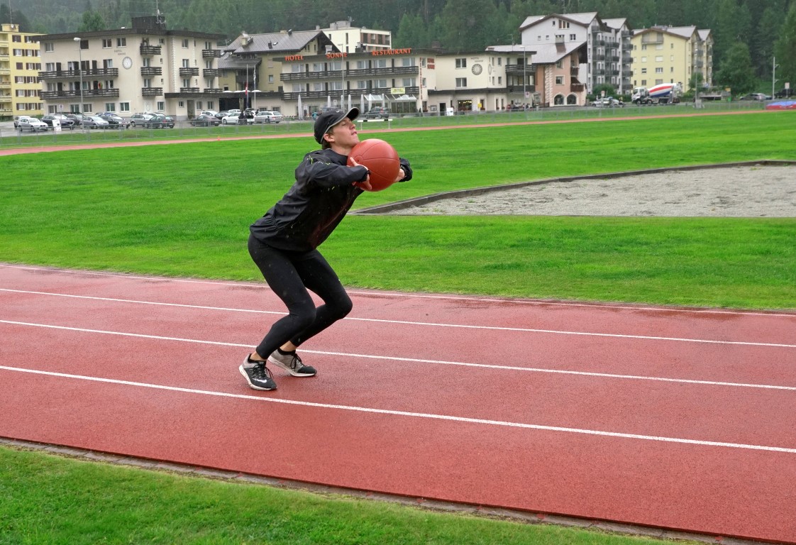 Trainingslager St. Moritz 2017 12ter Tag. Seelitest, Kraft, Kugelstossen und Schnelligkeit, das die Lektionen des heutigen Tages.