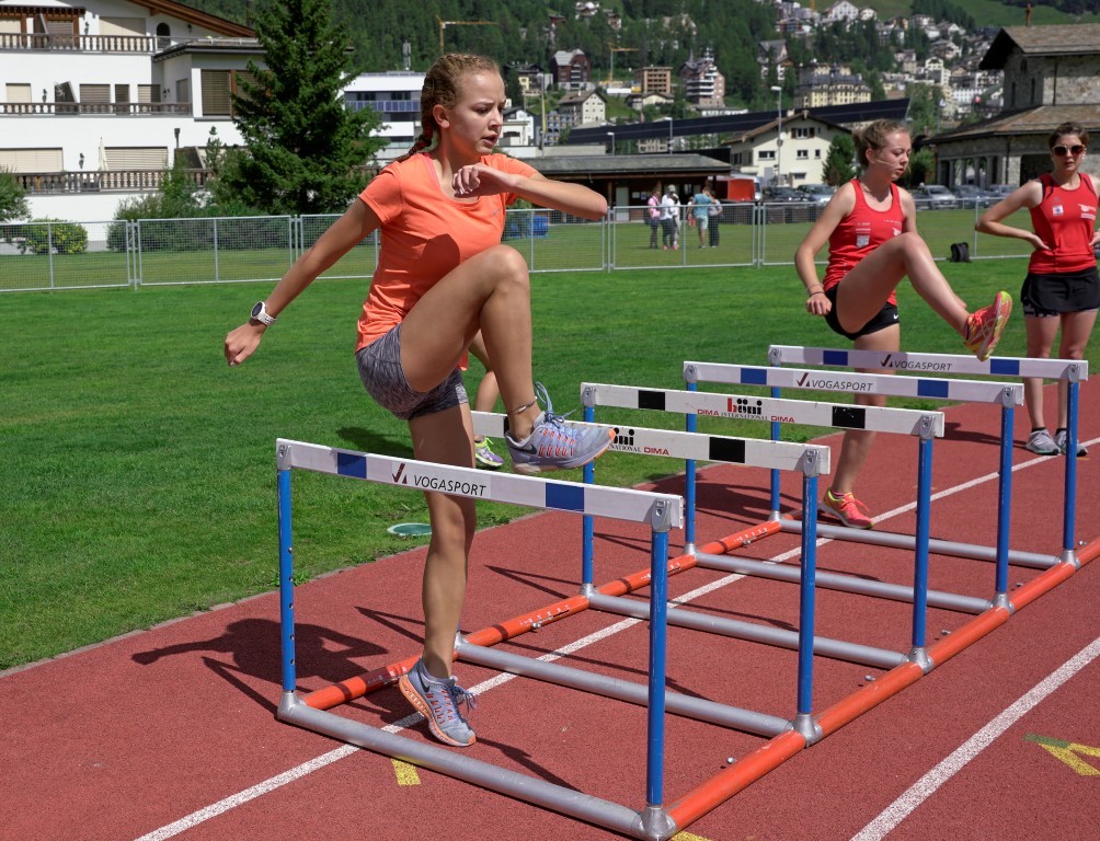 So auch Heute als die Läufer zusätzlich zum Training eine Jogalektion mit Andrea durchgeführt haben. Währenddessen trainierten die Techniker Hürden und am Nachmittag, als die Läufer frei hatten, Weitsprung.