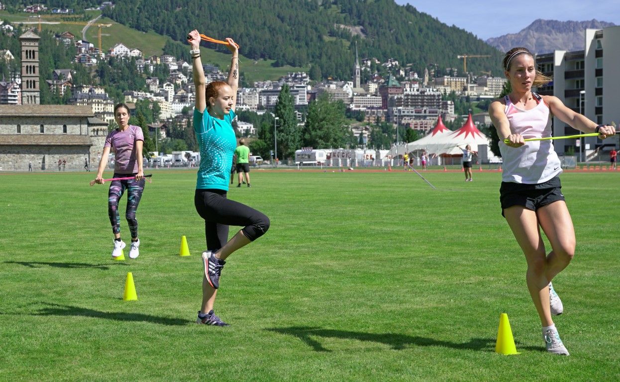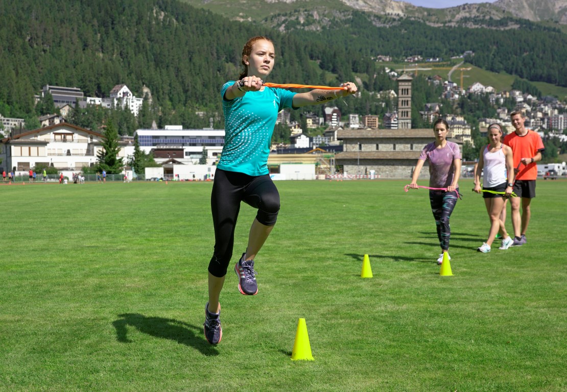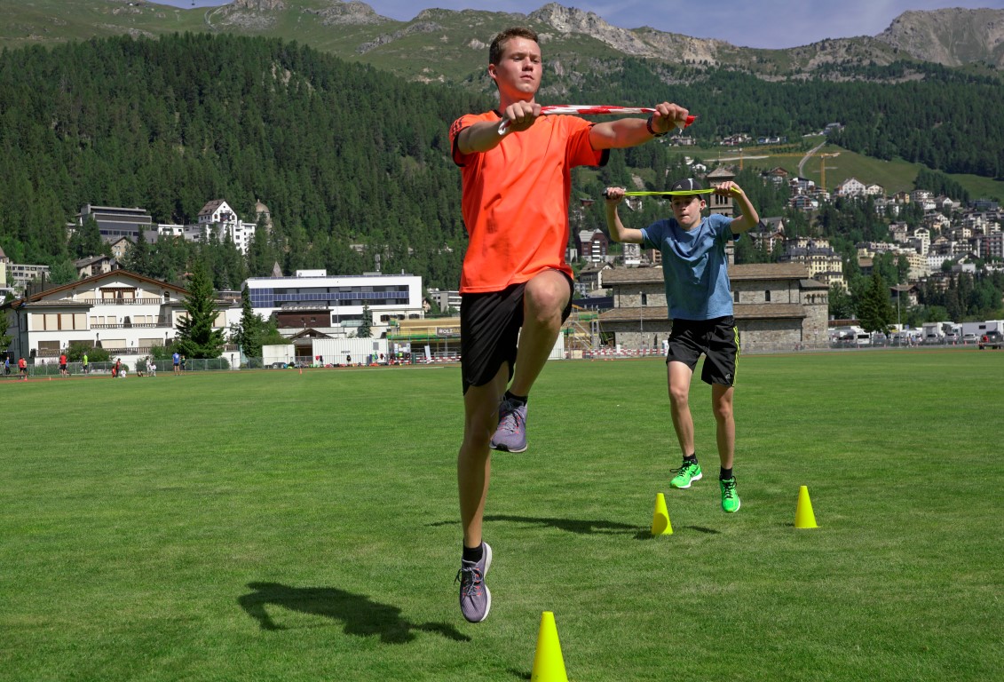 Am Vormittag Lauftechnik und Sprungkraft als Lektions- Inhalt. Am Nachmittag eine längere Ausdauer im mittleren Tempobereich um den Silvaplanersee, zudem Laufübungen auf der Sportanlage.