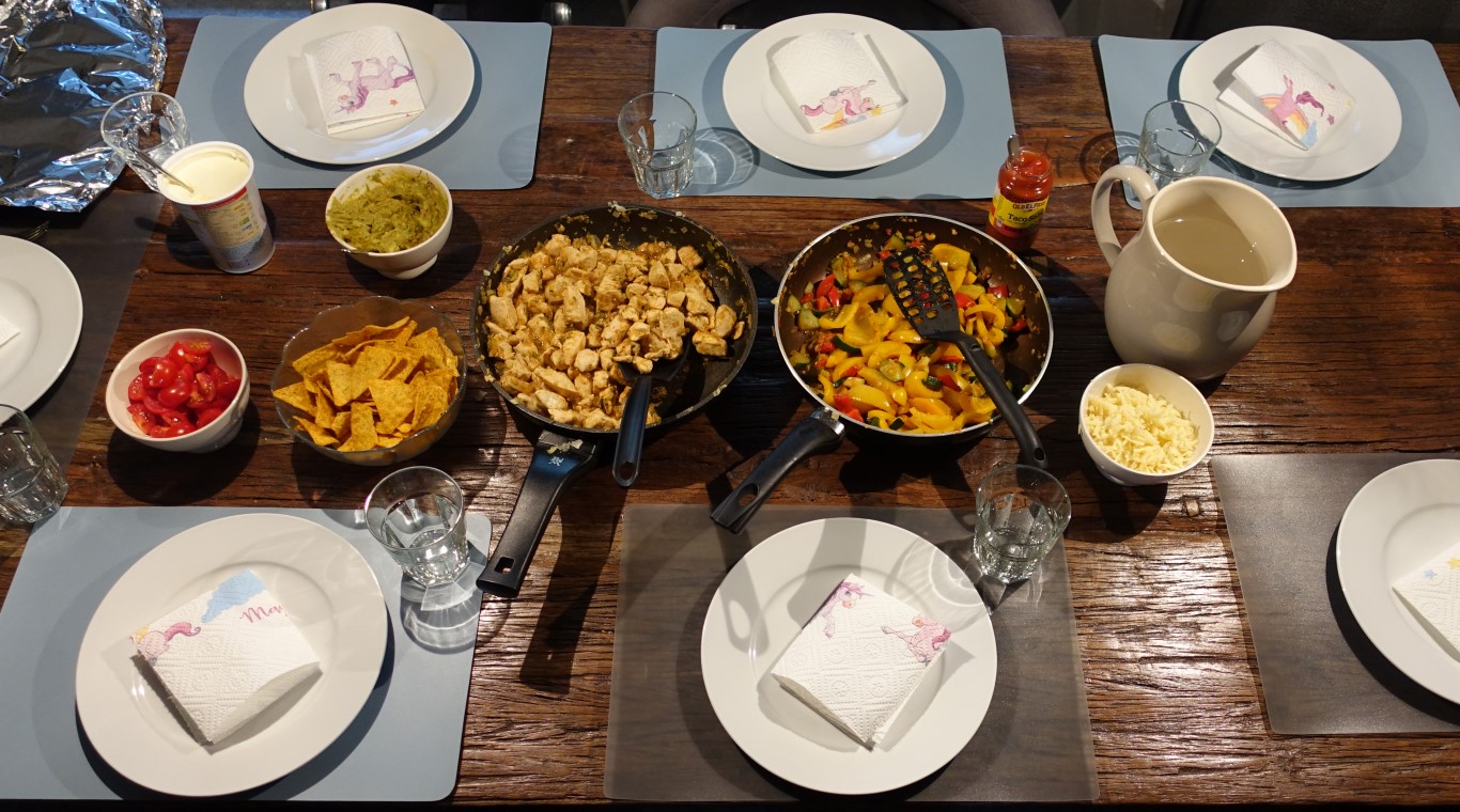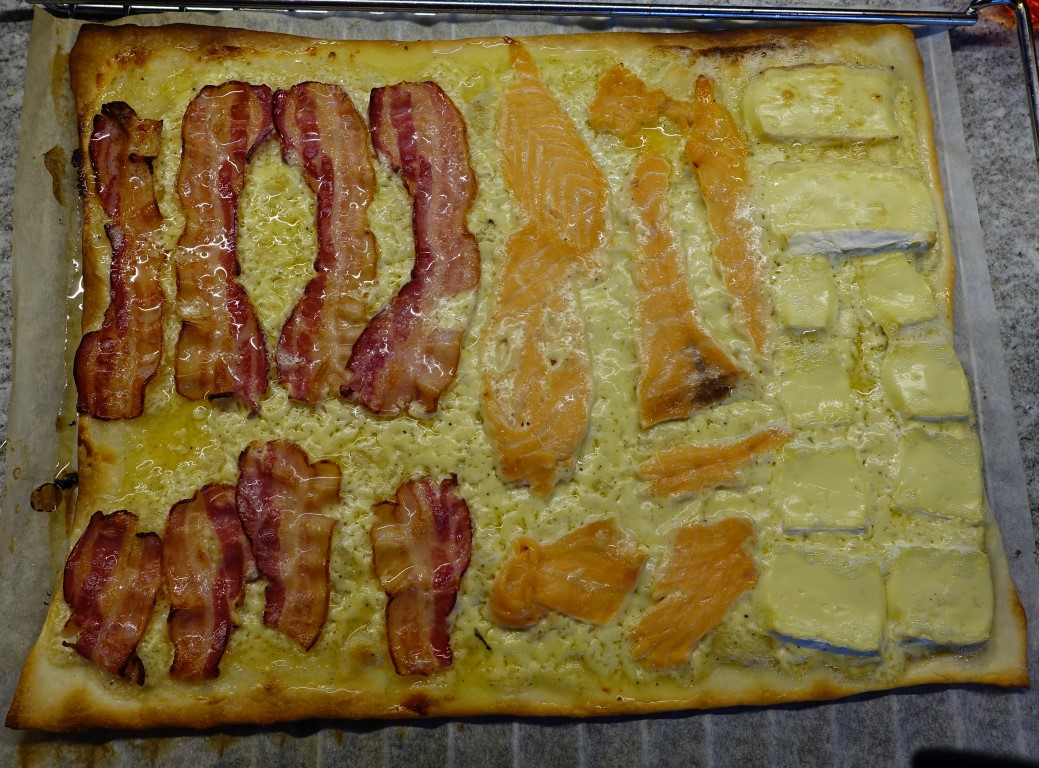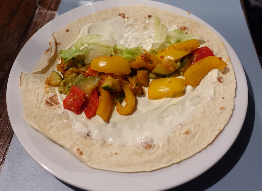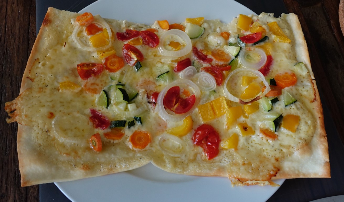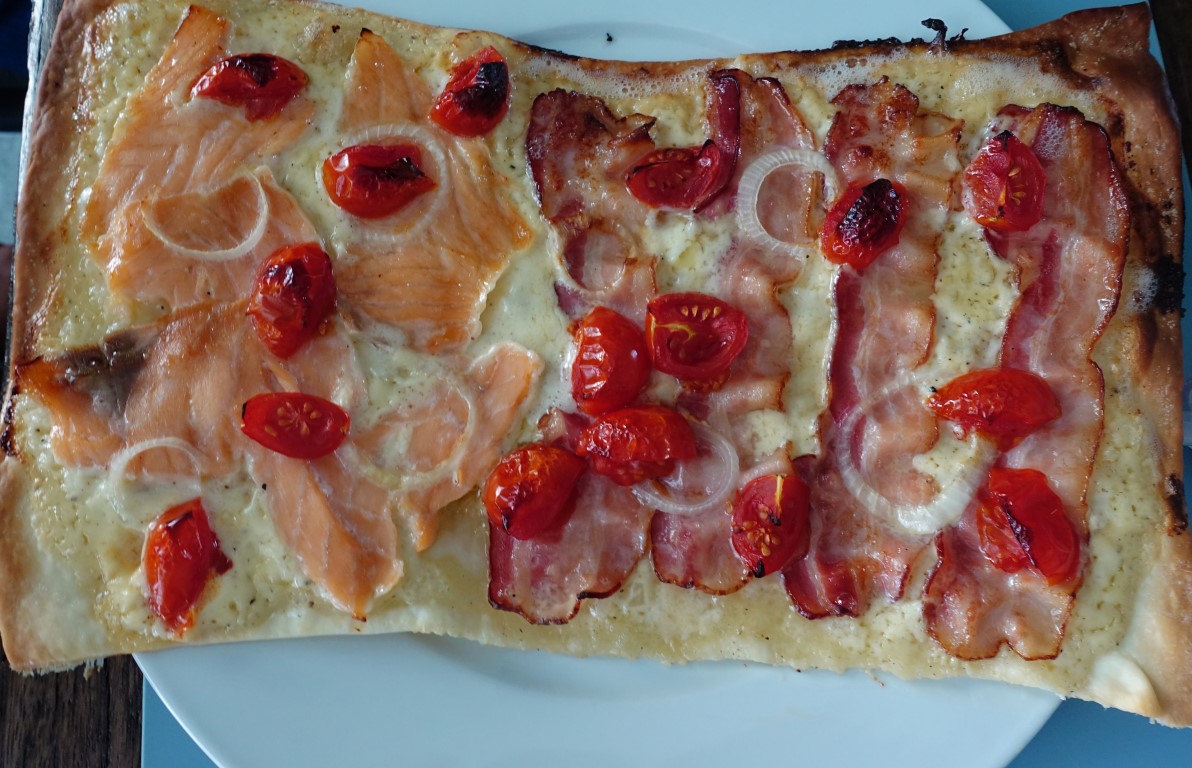 Hier ein paar wenige Bilder von zufällig aufgenommen Mahlzeiten: Flammkuchen verschiedenster Art und die „sandrische“ Spezialität, Fajitas.