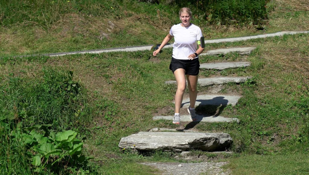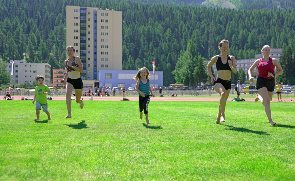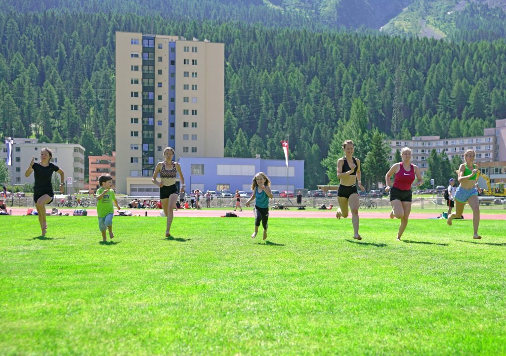 Am zwölften Tag war wiederum der Lauf von Maloja nach St. Moritz zu bewältigen. Auf diesen 16 Kilometern kann die wunderschöne Landschaft vom Engadin genossen werden, trotz der Anstrengung, die so ein Lauf mit sich bringt. Die Zweiwöcher absolvieren dafür eine Lektion Aquajogging im Hallenbad. Am Nachmittag versuchen wir nochmals die Lauftechnik zu verbessern mittels Hürdentechnik