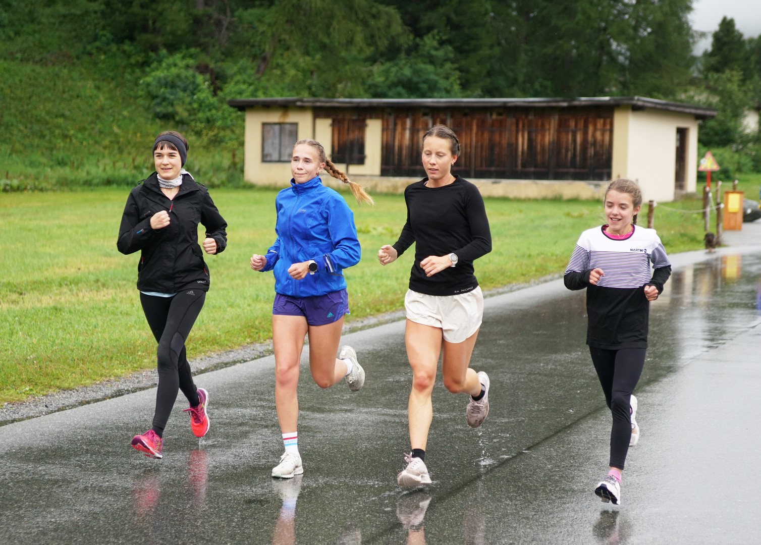 Am dritten Tag standen einerseits eine Ausdauer mit Tempovariationen, andererseits Schnelligkeit und Lauftechnik auf dem Programm. Am vierten Tag dann absolvierten die Läufer/innen den „obligaten“ Lauf von Maloja nach St. Moritz. Für den Nachwuchs galt es die Doppeleinheit Sprint und Wurf durchzuführen. Leider war das Wetter nicht unbedingt „anmächelig“, doch was soll’s, wir trainieren trotzdem.