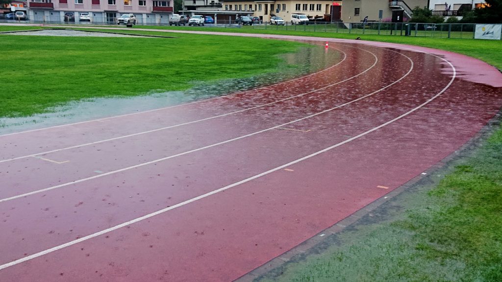 Die Grösseren führten ein Fahrtspiel im Raum des Campingplatzes durch, die Jüngeren absolvierten Sprung-Grundlagen und Lauftechnik. Bei den Mittwoch-Bildern ist zu sehen, wie die Sportanlage unter dem Dauerregen gelitten hat. Doch mit ein wenig Fantasie können auch ungewöhnliche Orte zum Trainieren gefunden werden.