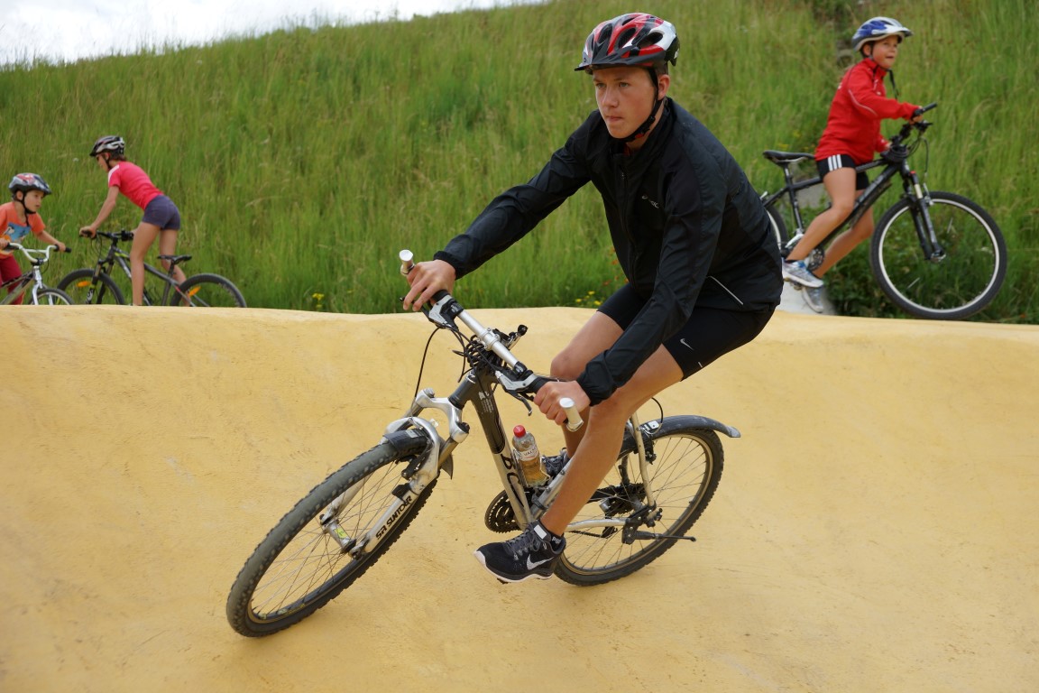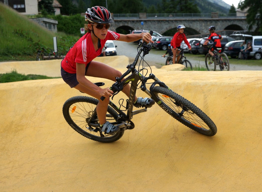 Unter anderem war die Gruppe wieder auf dem Bikepark in Pontresina. Neben dem Lauftraining machen die Athleten verschiedene Nebentätigkeiten die der Geschicklichkeit und Koordination dienen, so auch das Fahren auf diesem für Biker speziell erstelltem Parcour. Das die Athleten Spass daran hatten verraten ihre Gesichter auf den Fotos.